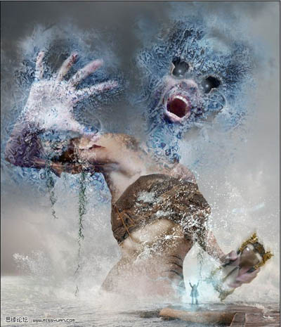 作者合成的非常细腻,很多细节的处理都值得借鉴,如水面倒影的处理部分,作者先制作好水波纹理,然后把倒影部分用置换和动感模糊滤镜特殊处理,