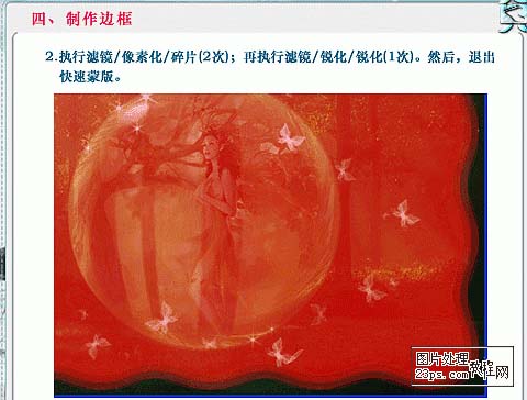 > 像素化 > 碎片2次,再执行:滤镜 > 锐化 > 锐化,然后按字母“Q”退出快速蒙版。
