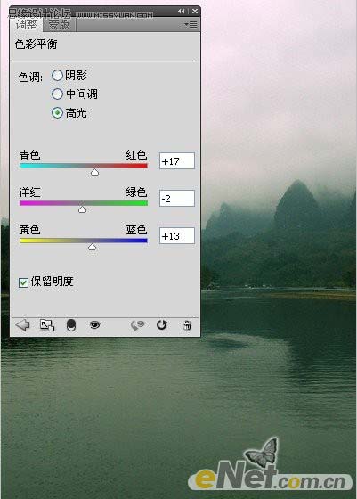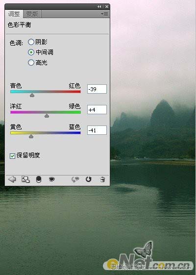 3、调整图像的色调。单击“创建新的填充或调整图层”按钮,在弹出的菜单中选择“色彩平衡”命令,在弹出菜单中设置参数,如图4和图5所示参数,在按Ctrl+ALT+G键执行“创建剪贴蒙版”命令,同时得到如图6所示效果。