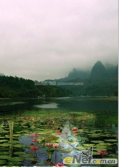 6、单击“添加蒙版”为“图层3”添加蒙版,设置画笔在荷花与光结合生硬的地方进行涂抹,得到如图13所示效果。