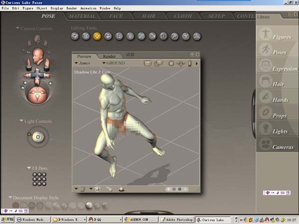 4、开始制作背景,参考构思图,背景中环境需要雕塑人形。下图为poser6软件构建的人形模型(如果你没有安装这些软件,可以直接跳到第7步再操作)。