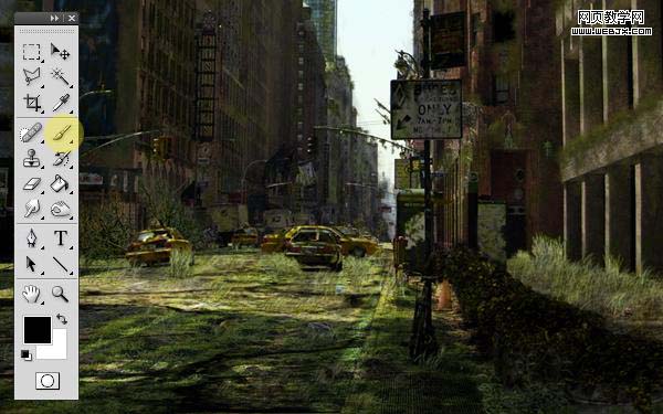 34、同样方法给汽车、标志、花添加上面的绿色效果。
