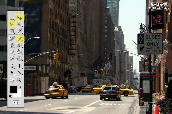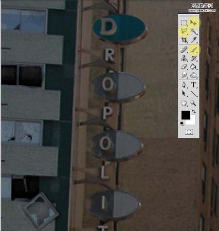 12、放大窗口,使用画笔工具移除一些玻璃和一些细节,我们用多边形套索工具移除不需要的部分。