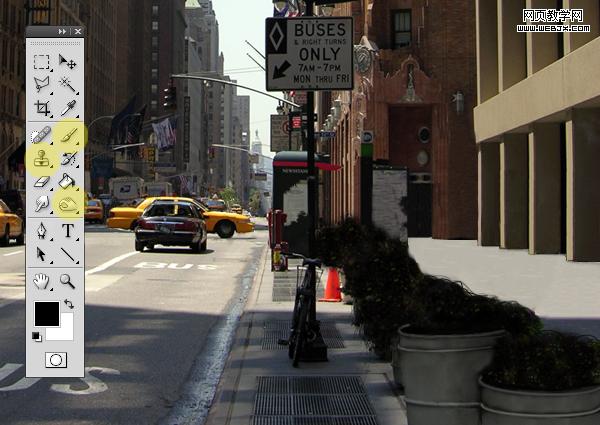 14、消除图像中的花,使用画笔工具克隆图章工具和加深工具对花进行处理。