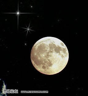 7、打开月球素材,用魔术棒选区出来,降低个别部位明度。