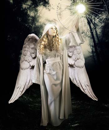 14、光线应照在脸上。所以你需要用白色的刷子在天使的面部和头发上涂抹,再设置图层模式为覆盖。