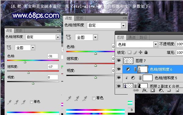 + Alt + E),创建色相/饱和度调整图层,参数设置如下图。