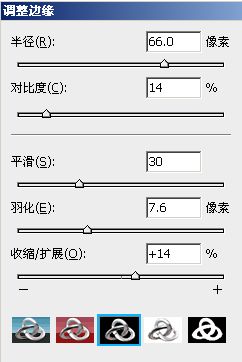 9、再来调节边缘(选择--调整边缘),参数如下。