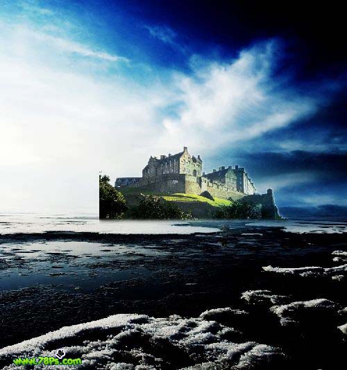 作者合成的非常细腻,很多细节的处理都值得借鉴,如水面倒影的处理部分,作者先制作好水波纹理,然后把倒影部分用置换和动感模糊滤镜特殊处理,
