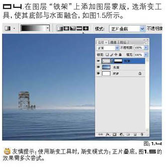 4、给“铁架”层加上图层蒙版,用黑白渐变拉出底部透明效果如下图。