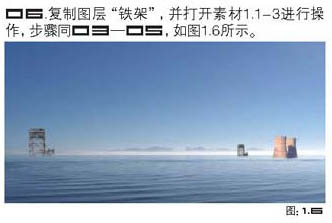 6、把“铁架”图层复制一层,放到较远位置,适当缩小一点,再打开下图所示素材,拖进来放好位置,再适当处理效果如下图。