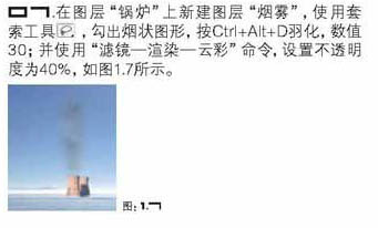 7、在图层“锅炉”上新建图层“烟雾”,使用套索工具,勾出烟雾形状,按Ctrl