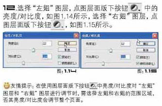 > 调整 > 亮度/对比度。参数设置如下图,再选择右翅同样执行亮度/对比度操作。