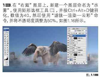 13、在右翅图层上新建一个图层命名为“水雾”,使用矩形选框工具,勾出选区,按Ctrl