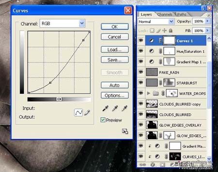 38、在顶层添加一个曲线调整层,并压暗。如图: