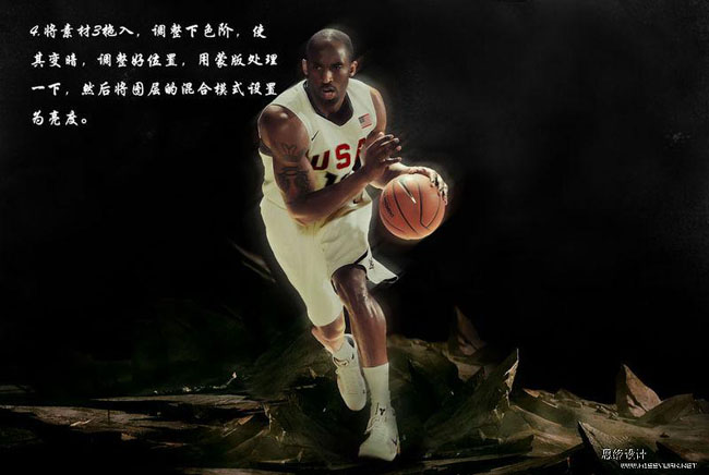 5、打开下图所示的素材,拖进来,放到篮球上面,把图层混合模式改为“滤色”,适当调整大小,比例跟篮球大小相当,加上图层蒙版用黑色画笔擦掉不需要的部分。