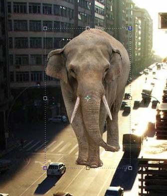 1、打开下面的城市和大象素材,将大象素材拖入到城市图片上,Ctrl
