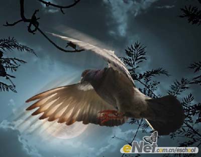 现在你已经学会了如何通过【动感模糊】结合【图层混合模式】制造鬼魅效果。你也可以对鹰的尾巴进行同样的操作。不过要适度,因为尾巴的移动不像翅膀那样快。