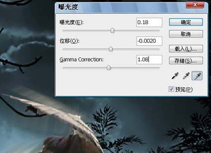 10、进一步调整。选择图层【鹰】,执行【图像—调整—曝光度】命令,
