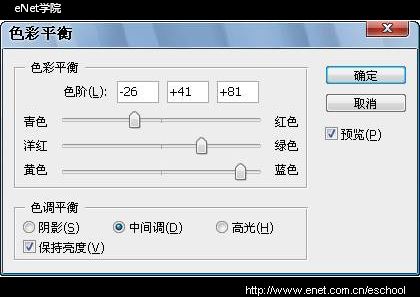 选择【纹理】图层,按【Ctrl+B】键执行色彩平衡命令,参数设置如下图所示。