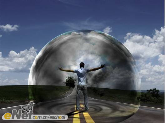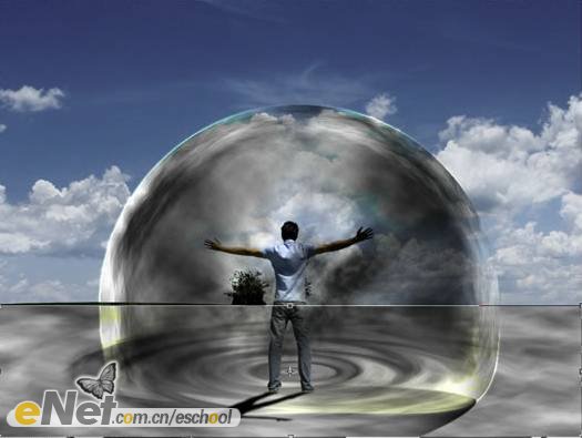 作者合成的非常细腻,很多细节的处理都值得借鉴,如水面倒影的处理部分,作者先制作好水波纹理,然后把倒影部分用置换和动感模糊滤镜特殊处理,