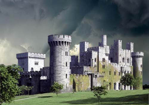 2、拖进下图所示的素材,调整位置,按住CTRL点击“城堡”图层,按DELETE删除。如图。