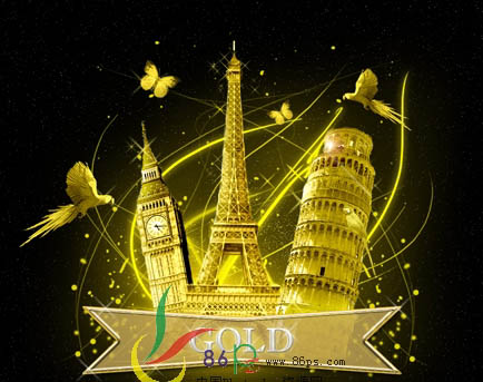 本教程主要是利用素材和笔刷来合成非常经典的金色艺术效果图。制作的时候需要掌握好多图组合的技巧,至于颜色可以按照自己的喜好调整。