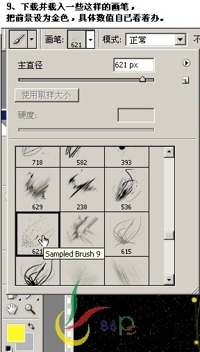 9、下载并载入一些,下图类似的笔刷。
