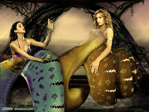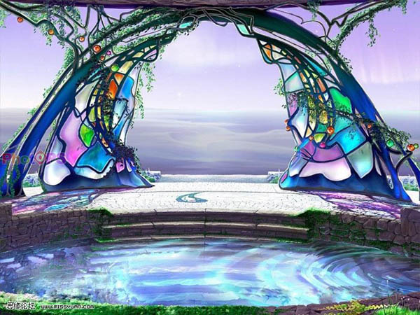 作者合成的非常细腻,很多细节的处理都值得借鉴,如水面倒影的处理部分,作者先制作好水波纹理,然后把倒影部分用置换和动感模糊滤镜特殊处理,