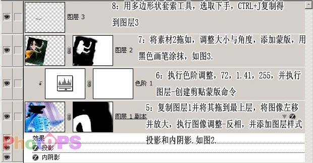 + J复制得到图层3。(下图为5-8步图层参照)