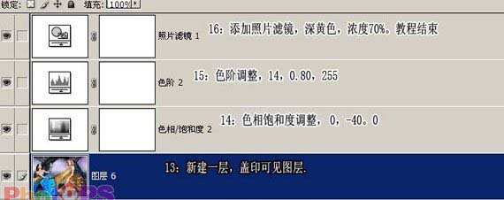 16、创建照片滤镜调整图层,参数设置:深黄色,浓度70%,确定后完成最终效果。下图为13-16步图层参照。