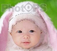 4、如果觉的有些部分遮不住,用仿制图章涂一下,在宝宝图层将漏出的头顶部分删除,最后如上图所示.
