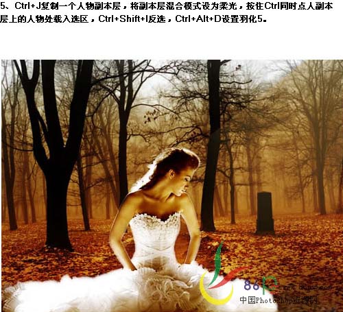 + J复制一个人物副本将副本图层混合模式改为“柔光”,按Ctrl点人物副本载入选区,按Ctrl + Shift + I反相,按Ctrl