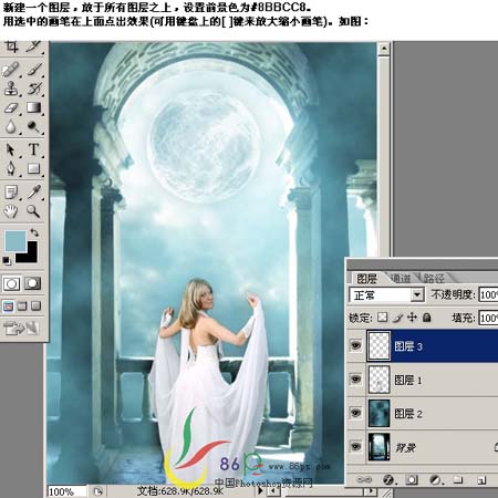新建一个图鞥,前景色设置为:#8BBcc8,刷上画笔,效果如下图。