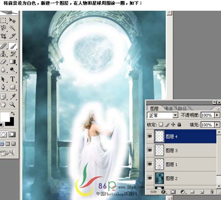 把前景色设置为白色,新建一个图层,在人物和星球周围涂抹。