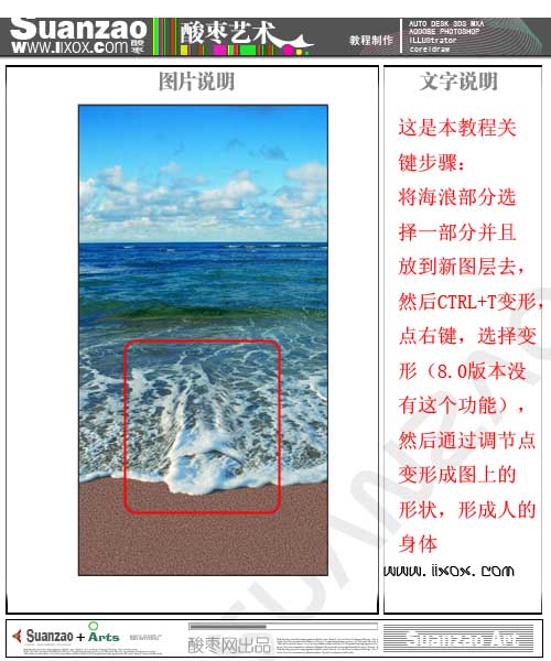 作者合成的非常细腻,很多细节的处理都值得借鉴,如水面倒影的处理部分,作者先制作好水波纹理,然后把倒影部分用置换和动感模糊滤镜特殊处理,