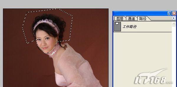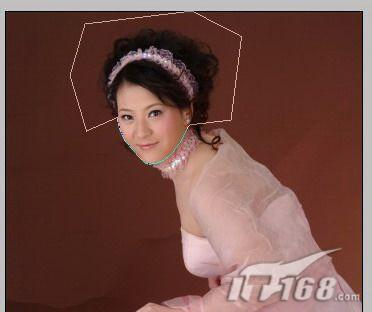 3、然后从“工具栏”中选择“钢笔”工具,我们的主要目的是把图4人物的头部抠下来。所以,用钢笔勾勒出大致轮廓,这里要注意脸部轮廓一定要精确,其他地方可以大致勾勒。如图5所示: