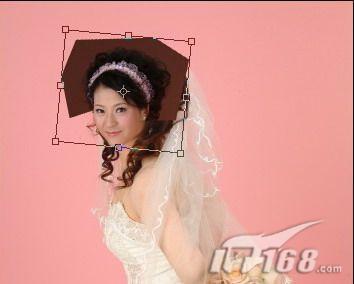 5、将所选头部的区域,拖到图3中,将“人物B”头部的角度调成与“人物A”头部的角度相近的角度(包括方向和头部的大小)。接着,右击拖过来的人物头部,使其处于当前操作状态,“Ctrl+T” 快捷键,自由旋转,如图7: