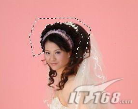 7、为了保持和原照片风格一样,我们还要保留原照片的皇冠,所以,把“人物B”一部分的头发连同丝带用“套索”工具选中,一起删除。得到如图10: