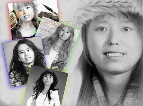 19、选择图21作为底图,将其他做好的照片拖拽到21中,并调整他们的大小和位置,单击图层面板下方的“添加图层样式”按钮,选择“投影”,为图片添加上不同颜色的投影,效果如图22所示。