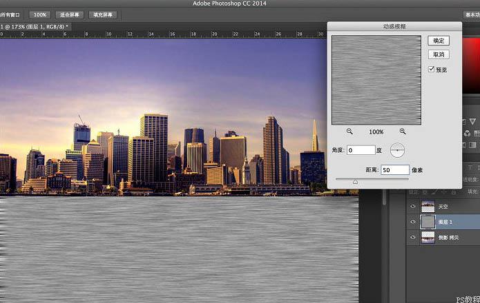 作者合成的非常细腻,很多细节的处理都值得借鉴,如水面倒影的处理部分,作者先制作好水波纹理,然后把倒影部分用置换和动感模糊滤镜特殊处理,