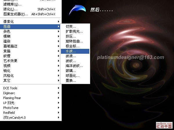 > 扭曲 > 水波,适当把数值设置大一点,效果如下图。