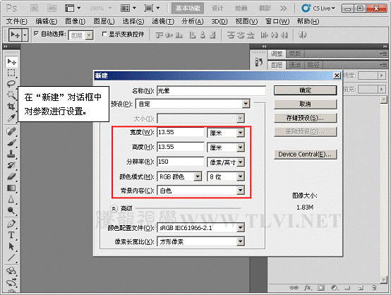 1、运行Photoshop,执行“文件”→“新建”命令,新建“光晕”文档。