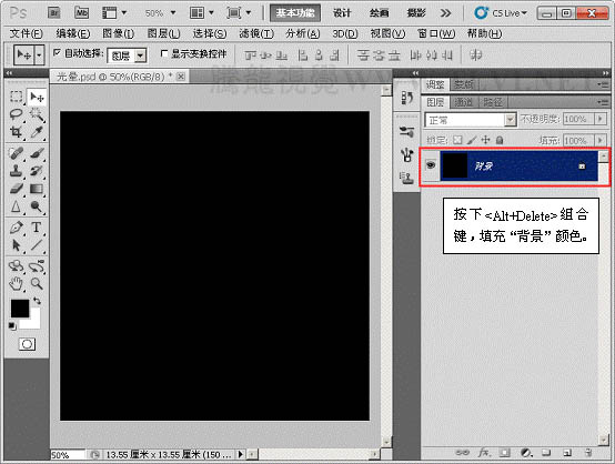 2、将“背景”图层填充为黑色。