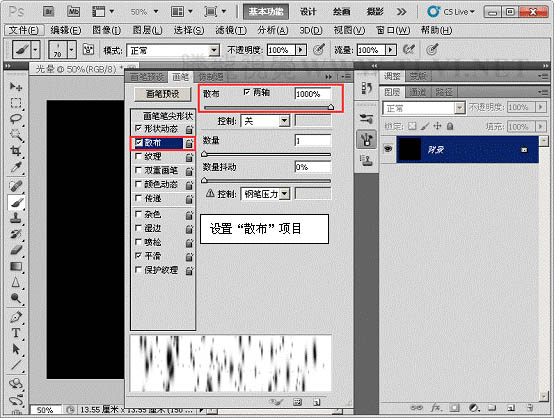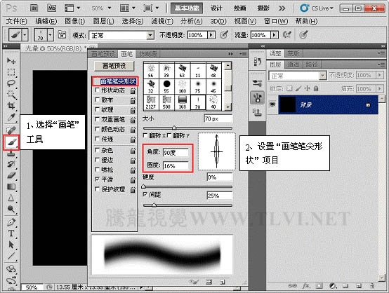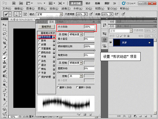 3、选择“画笔”工具,并对其运行设置。