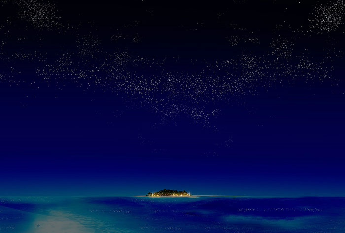 作者合成的非常细腻,很多细节的处理都值得借鉴,如水面倒影的处理部分,作者先制作好水波纹理,然后把倒影部分用置换和动感模糊滤镜特殊处理,