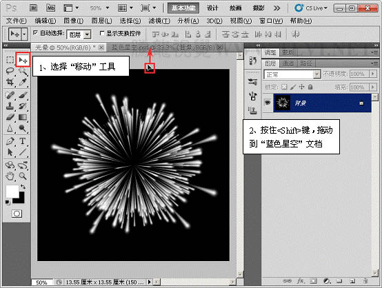 9、打开下图所示的背景,将“光晕”背景图层移到。
