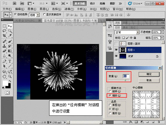 10、执行“滤镜”→“模糊”→“径向模糊”命令。