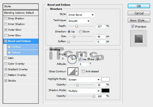 6、新建图层并绘制一个圈形,圆形填充黑色,然后执行下列的图层样式。