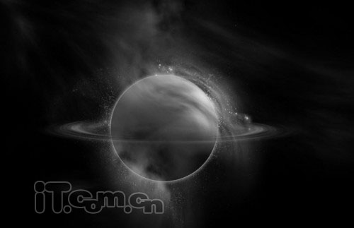 12、你也可以把其中的云彩移动到行星的表面上,然后设置图层混合模式为滤色,如图所示。